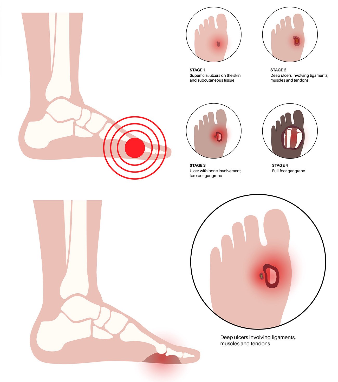 Η μειωμένη αιματική ροή λόγω αγγειακής νόσου περιορίζει την επούλωση τραυμάτων και αυξάνει τον κίνδυνο νέκρωσης και λοιμώξεων.